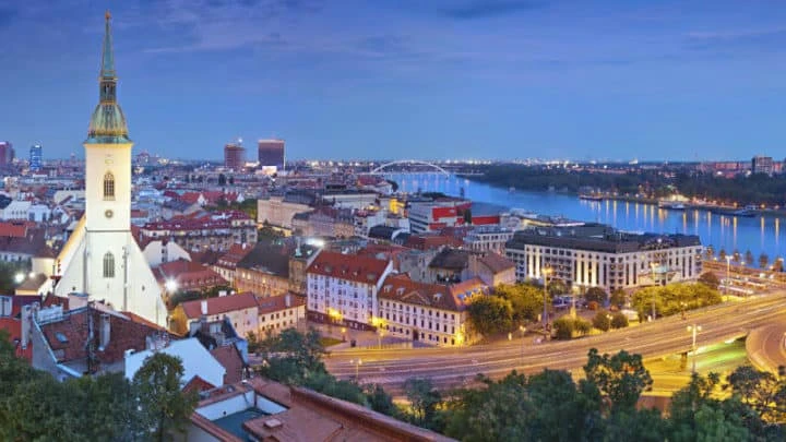 A river ferry service between Vienna and Bratislava takes you along the Danube from spring to fall. The journey takes around a similar time to the train and, unlike the train, stops in the heart of the city. Many Danube river cruises also stop at Bratislava on their route.